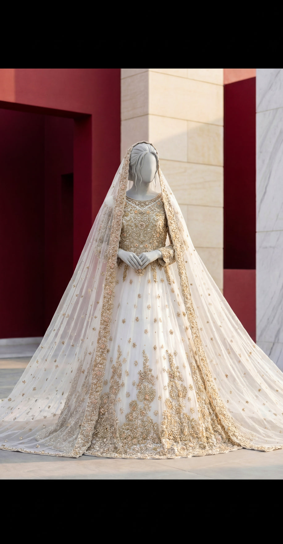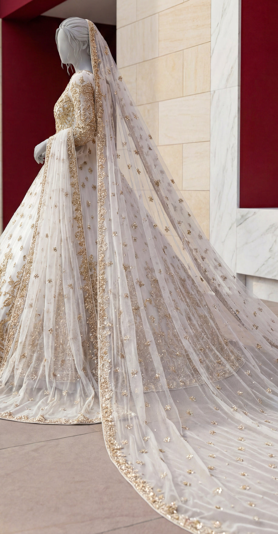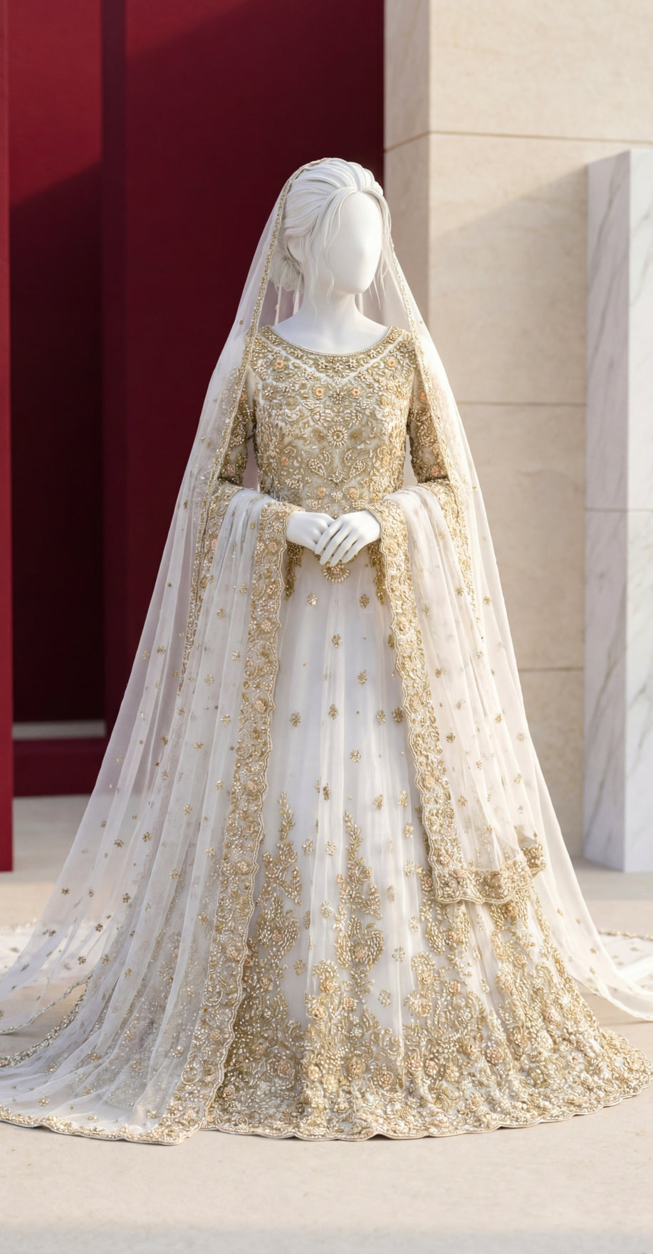 Crafted with delicate net fabric and adorned with rich embellishments, this maxi reflects refined craftsmanship and a regal aesthetic—perfect for moments that deserve a grand and graceful look.