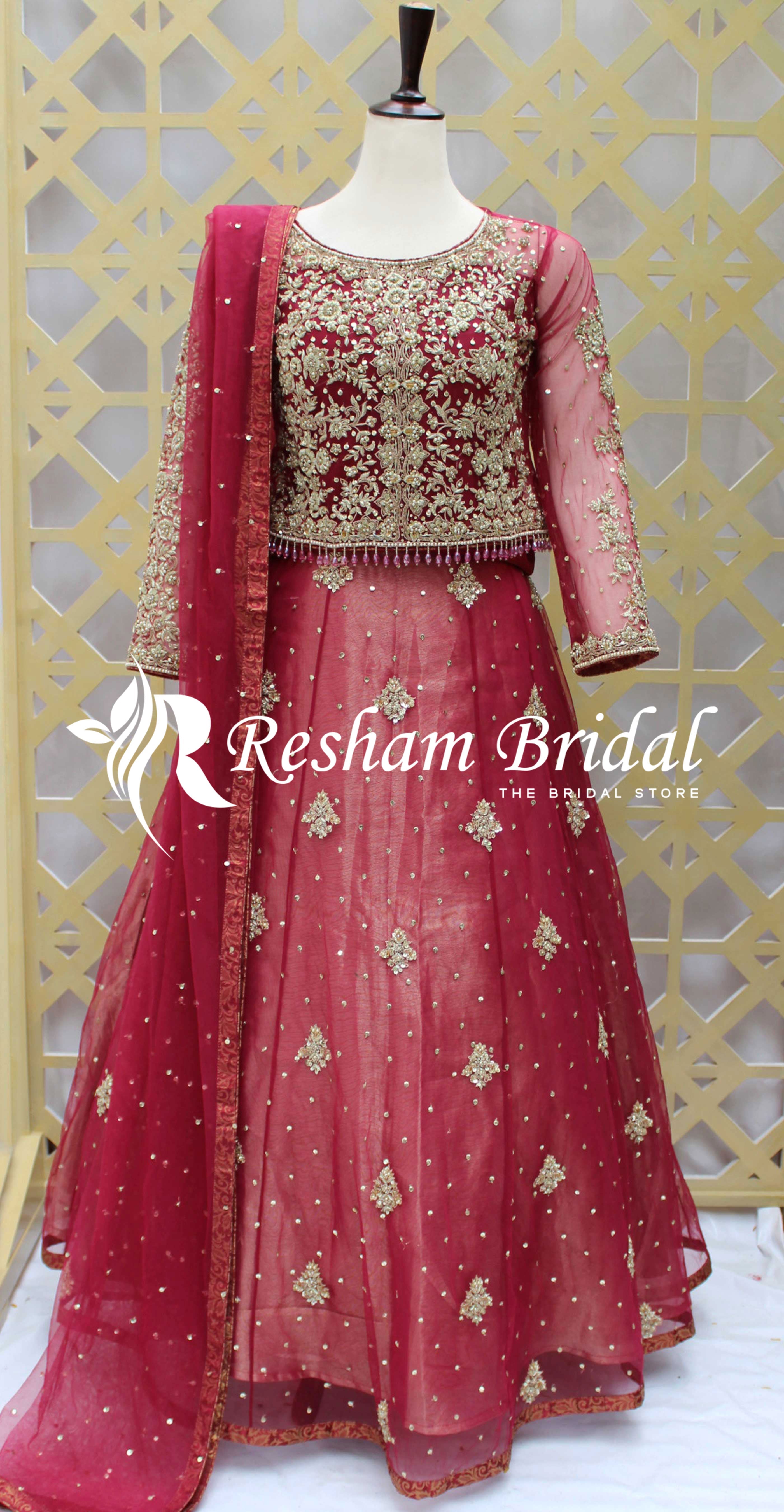 Description: The net shirt is adorned with exquisite hand embroidery. Traditional embellishments such as intricate kora,zari, pearls, and stones.